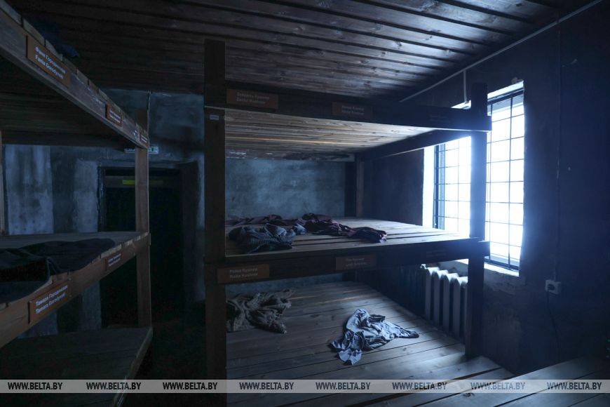 Их ждали холодные нары, которые в музее воссоздали по реальным чертежам. Абсолютно голые доски с маленькой площадью на одного. Тогда люди радовались даже тому, что выделялось 65 см на человека, а не 55 см, как было раньше. В небольшой комнатке ютились 22 человека. Сейчас на каждой койке золотыми буквами высечены фамилии узников: целые семьи Кушнер, Городинских… А еще загадочная семья, которую обозначили как семью с грудным ребенком. Где-то постелен нетронутый матрас, как будто время застыло, и кровать ждет возвращения человека.