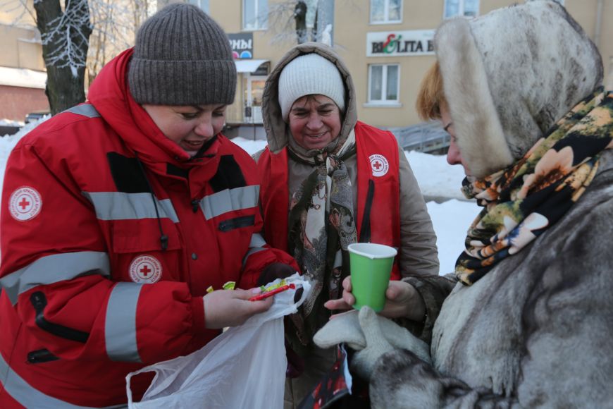 Белорусский Красный Крест начал активную работу по организации пунктов обогрева, оказывать помощь в сильные снегопады и при низких температурах стали еще с 8 января. Так, Витебская областная организация была первая, кто открыл пункт обогрева для населения.