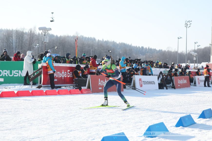 Участие в смешанной эстафете 4х6 км приняли три четверки из нашей страны и шесть российских квартетов. В состав главной белорусской команды вошли Динара Смольская, Анна Сола, Степан Данилов и Антон Смольский. На стартовом этапе Динара была безупречна на стрельбе и передала эстафету второй в 20 секундах позади лидера.